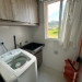 - Lavanderia com janela: com o Tanquinho e Máquina de lavar, aéreo em MDF e varal aéreo e cortina