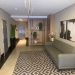 Hall de entrada e lazer decorado e mobiliado.